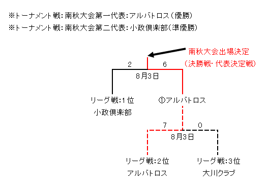 準決勝:アルバトロス(ジャンケン5対1) ※南秋大会代表決定 |